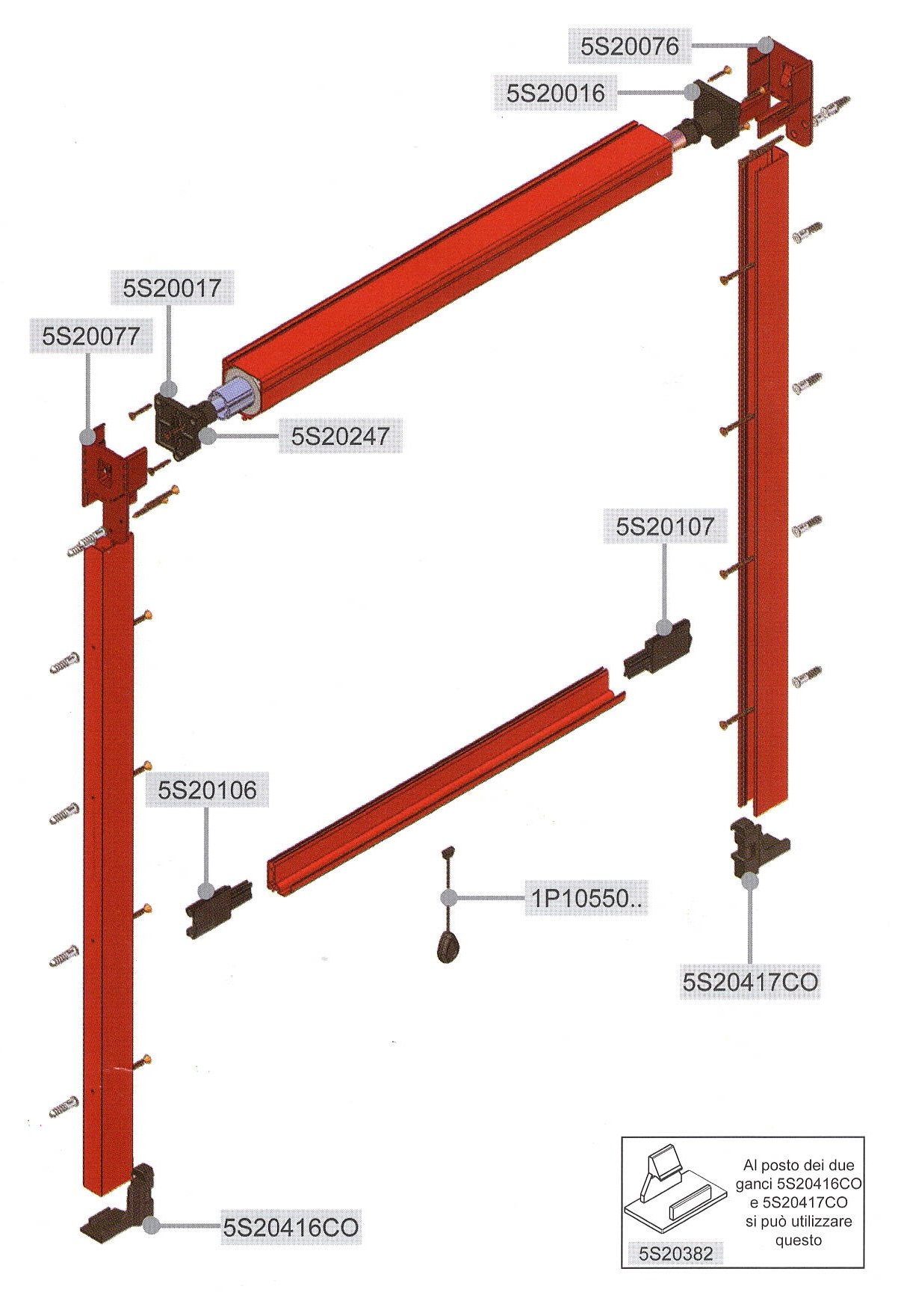 Nota: disponibili ricambi e accessori indicati nello schema esploso (es. 5S20016, 5S20017, 5S20076, 5S20077, 5S20106, 5S20107, 5S20416CO, 5S20417CO, 5S20382, 5S20247, 1P10550…).